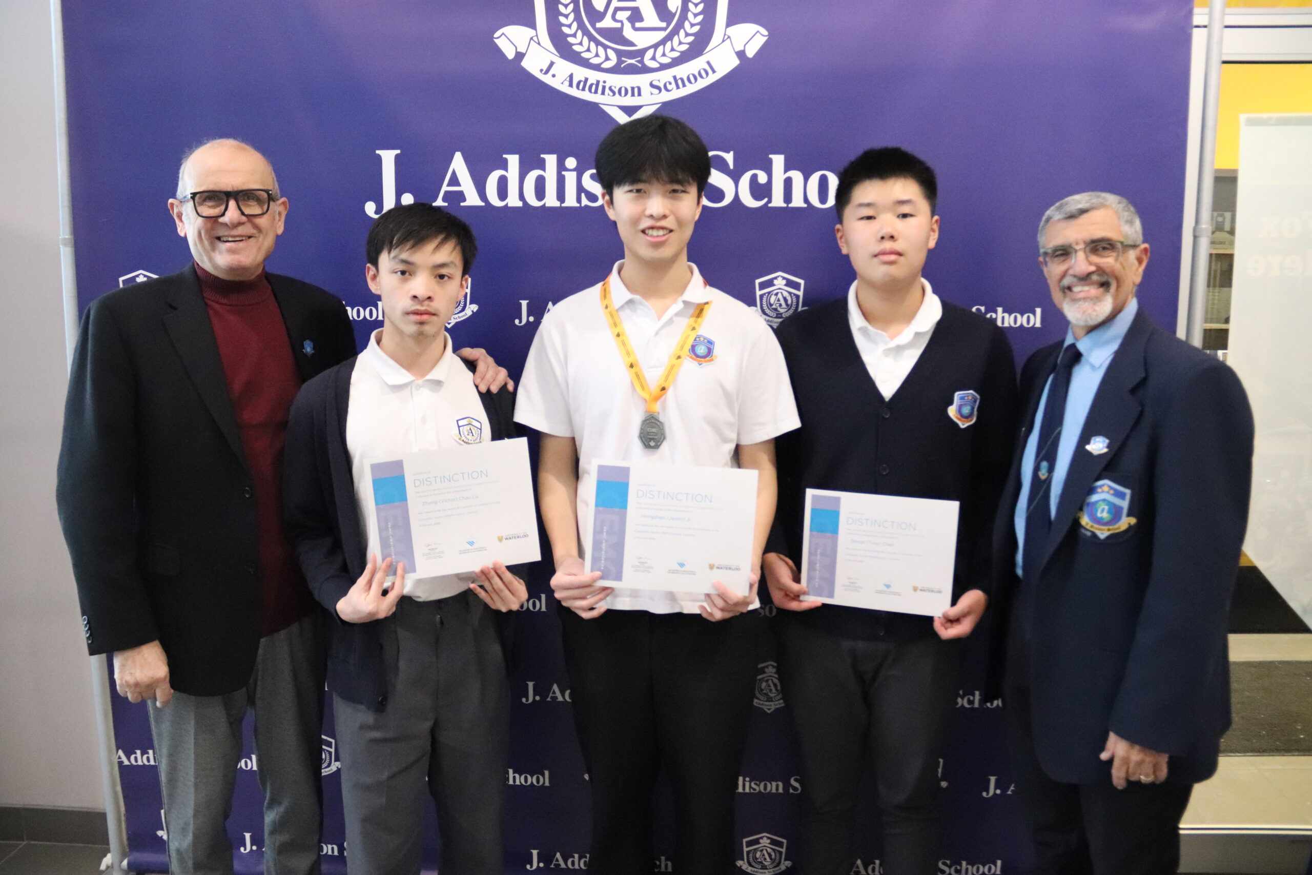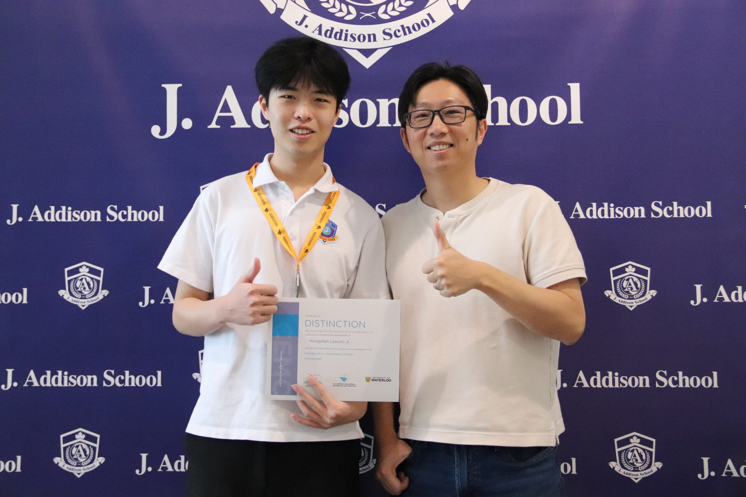 J. Addison School is proud to announce that three students have achieved remarkable success in the Canadian Senior Mathematics Contest 2025, hosted by The Centre for Education in Mathematics and Computing (CEMC) at the University of Waterloo. Among over 15,000 participants, Grade 12 students Jason J. and Victor C. L., along with Grade 10 student Tony C., distinguished themselves by placing within the top 25%, earning the Certificate of Distinction for their exceptional performance.